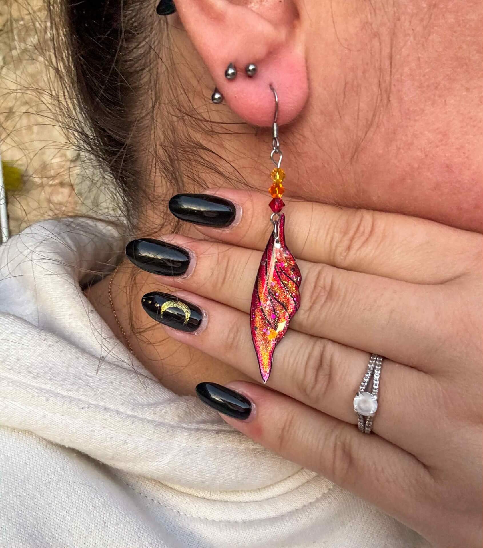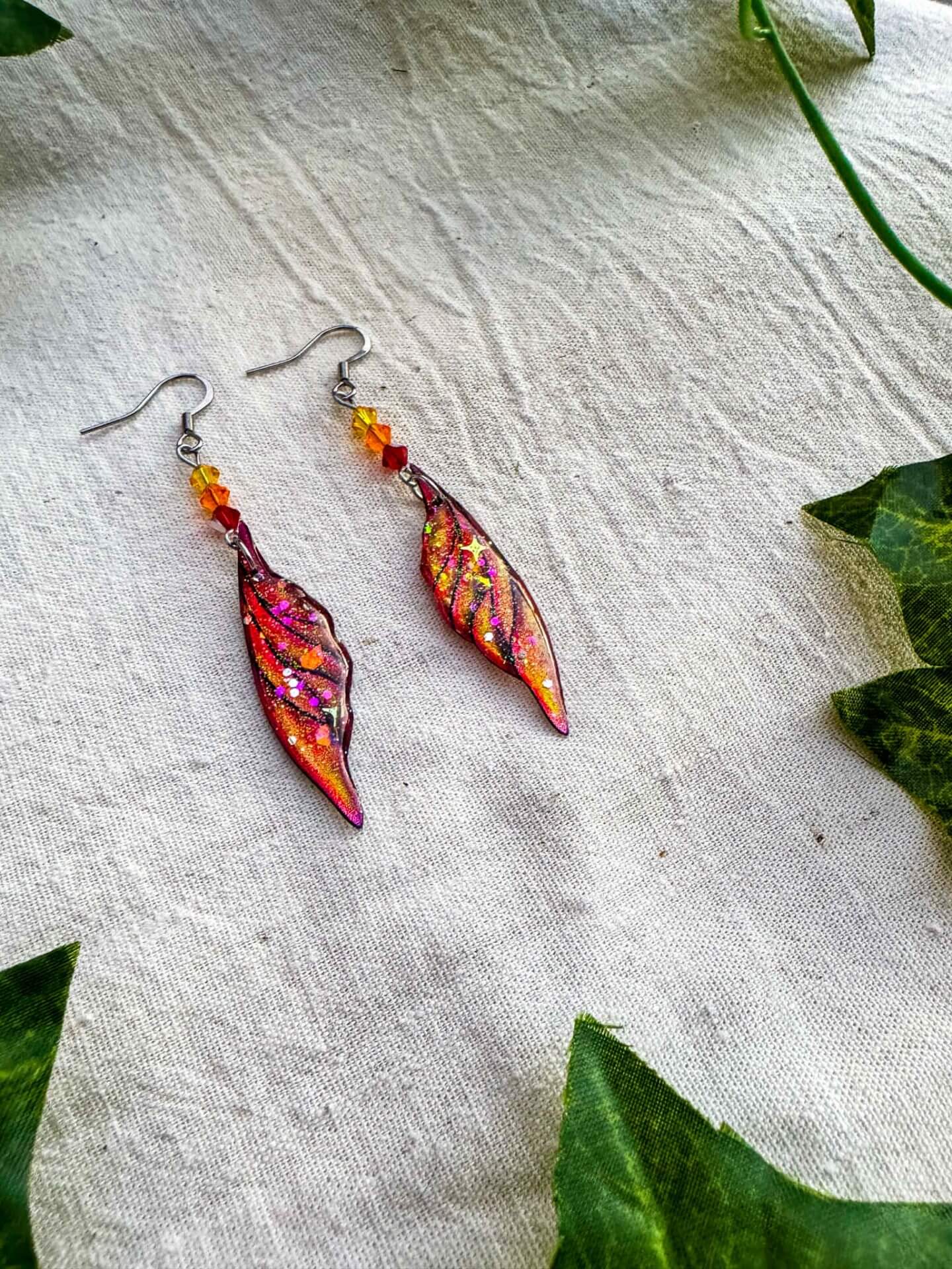 L’alliage est en acier inoxydable chirurgical, sans plomb et sans nickel. Les ailes mesurent environ 1,5cm de large sur 4,5cm de hauteur, la boucle d’oreille fait 6,5cm de hauteur (attache comprise).