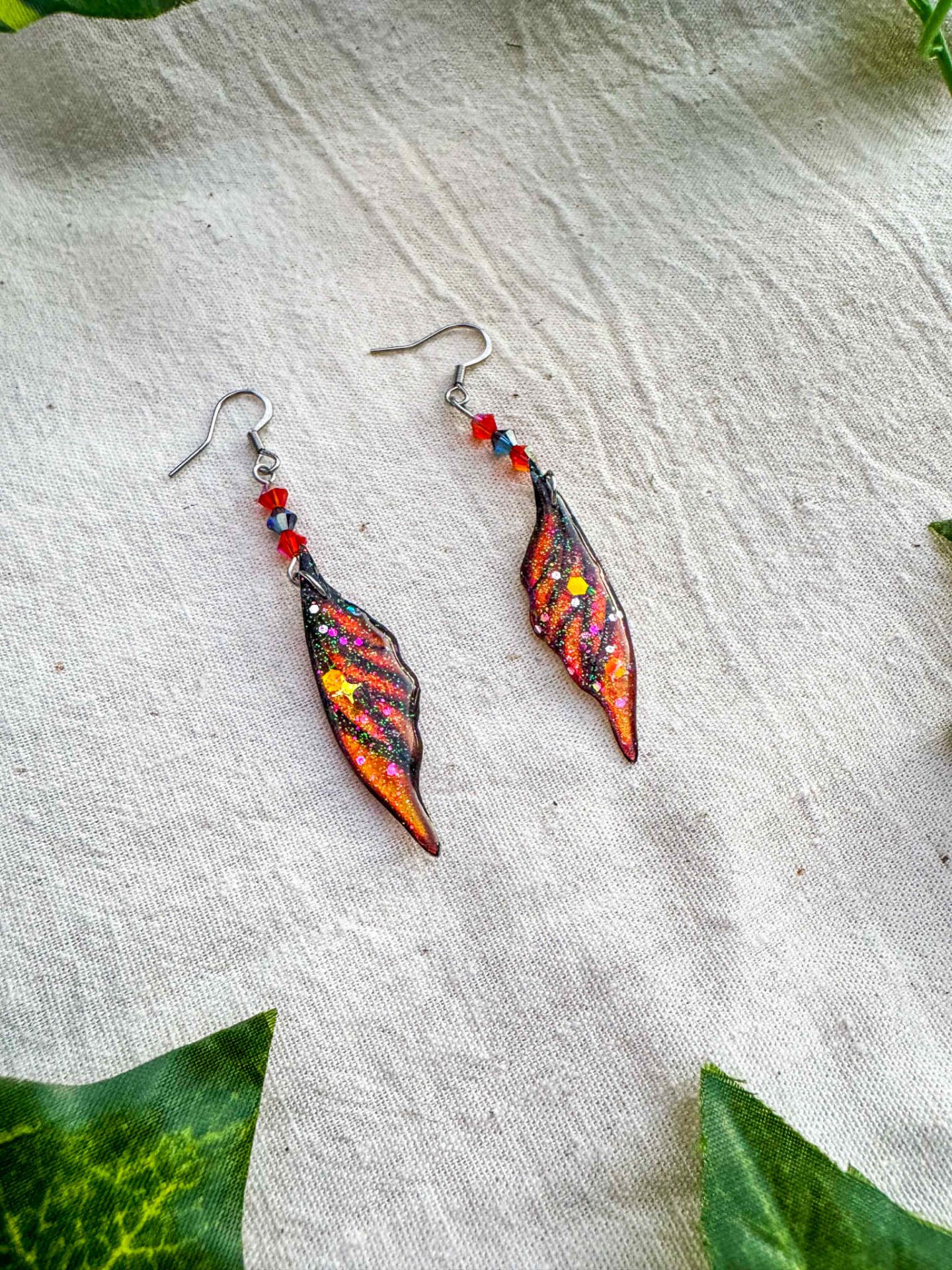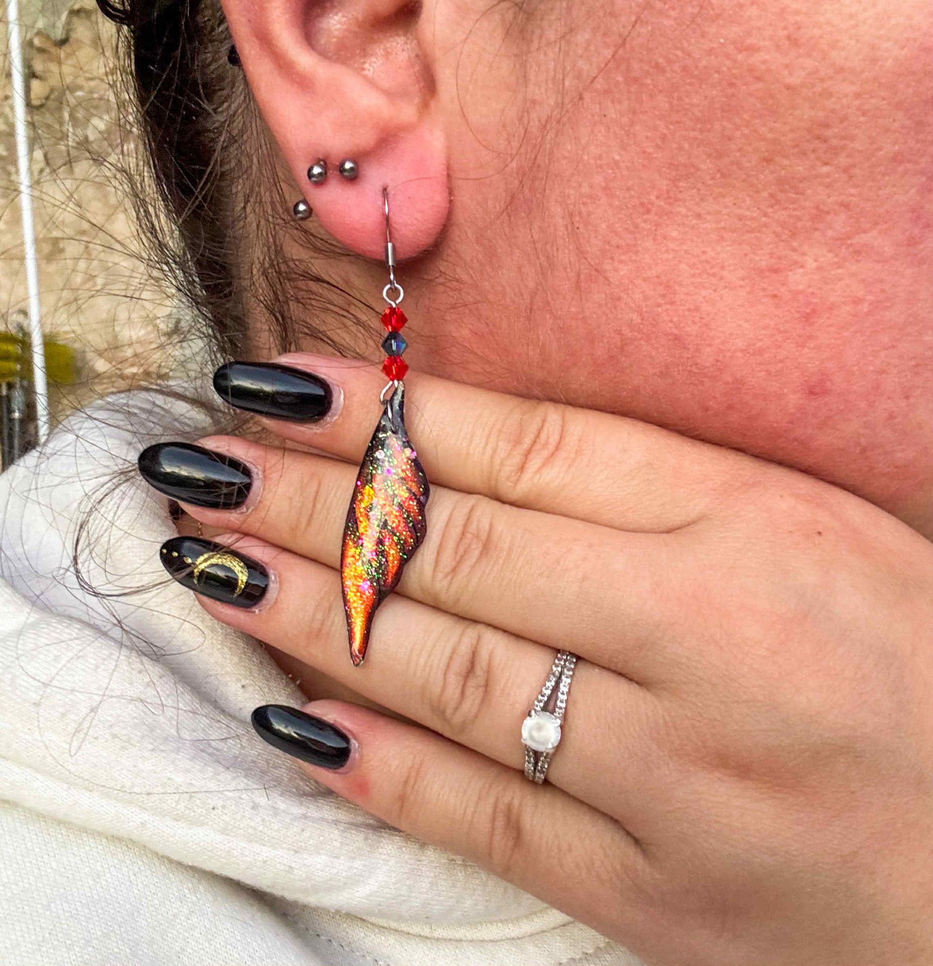 L’alliage est en acier inoxydable chirurgical, sans plomb et sans nickel. Les ailes mesurent environ 1,5cm de large sur 4,5cm de hauteur, la boucle d’oreille fait 6,5cm de hauteur (attache comprise).
