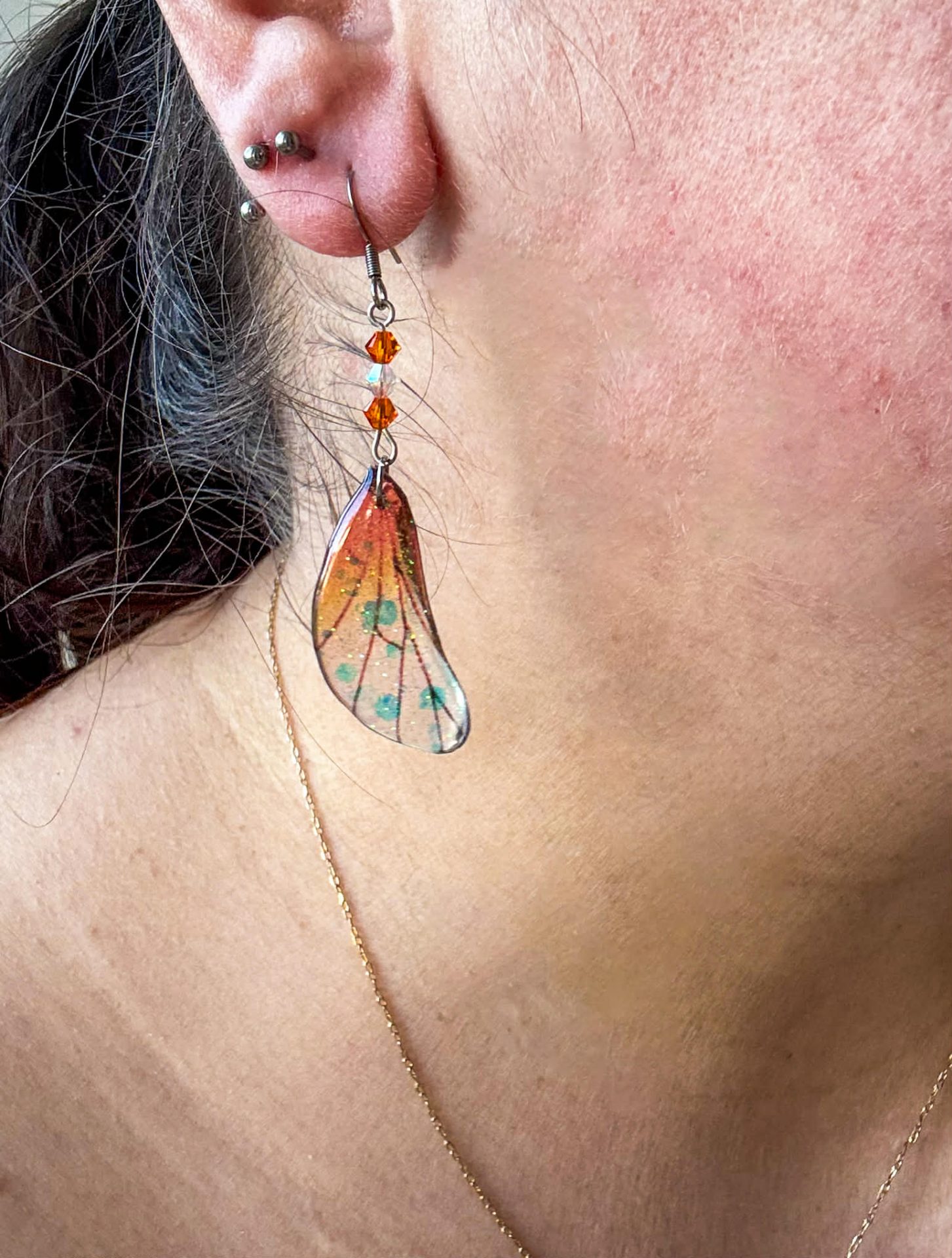 L’alliage est en acier inoxydable chirurgical, sans plomb et sans nickel. Les ailes mesurent environ 1,5cm de large sur 4,5cm de hauteur, la boucle d’oreille fait 6,5cm de hauteur (attache comprise).
