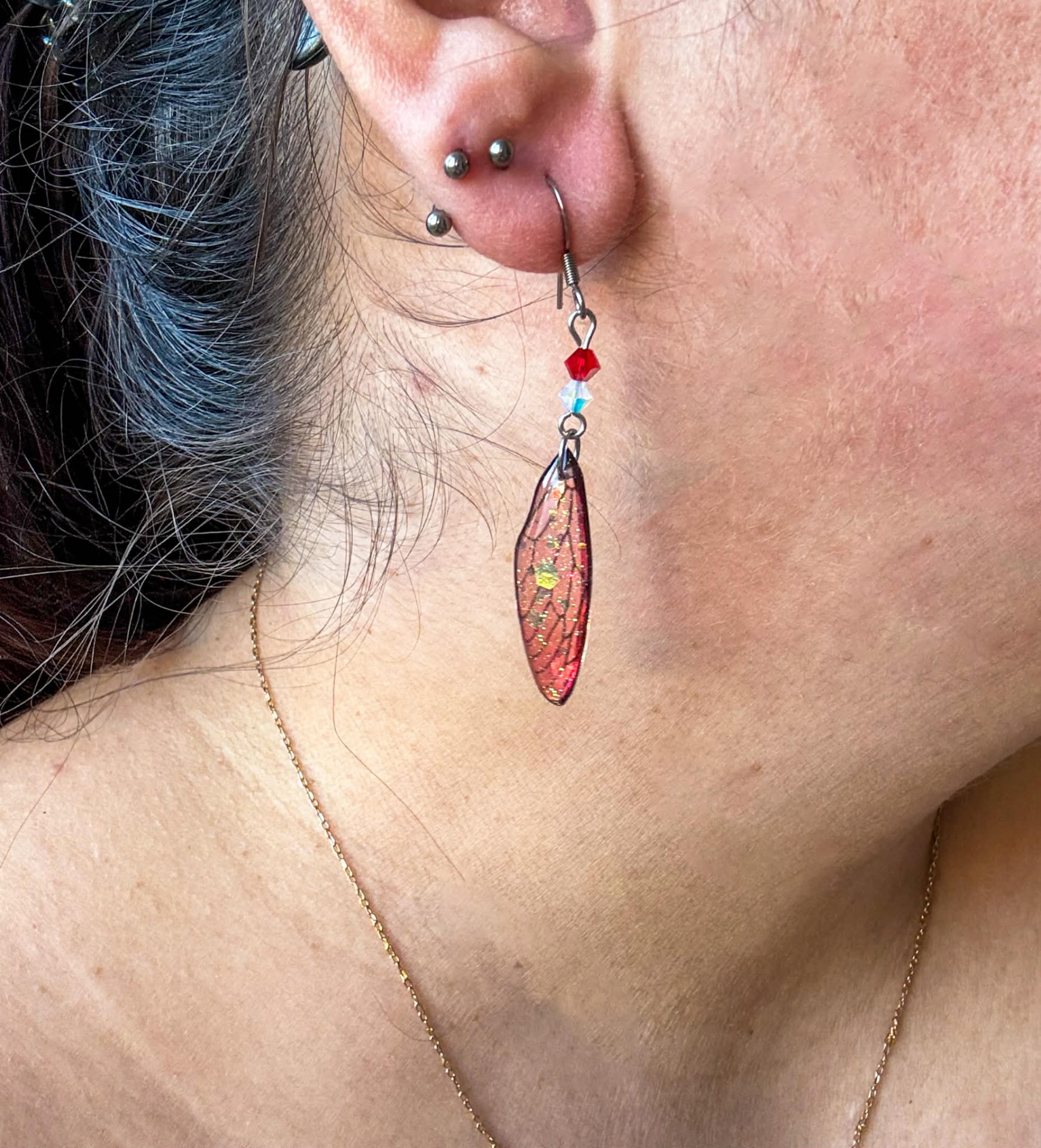 L’alliage est en acier inoxydable chirurgical, sans plomb et sans nickel. Les ailes mesurent environ 1cm de large sur 4cm de hauteur, la boucle d’oreille fait 6cm de hauteur (attache comprise).