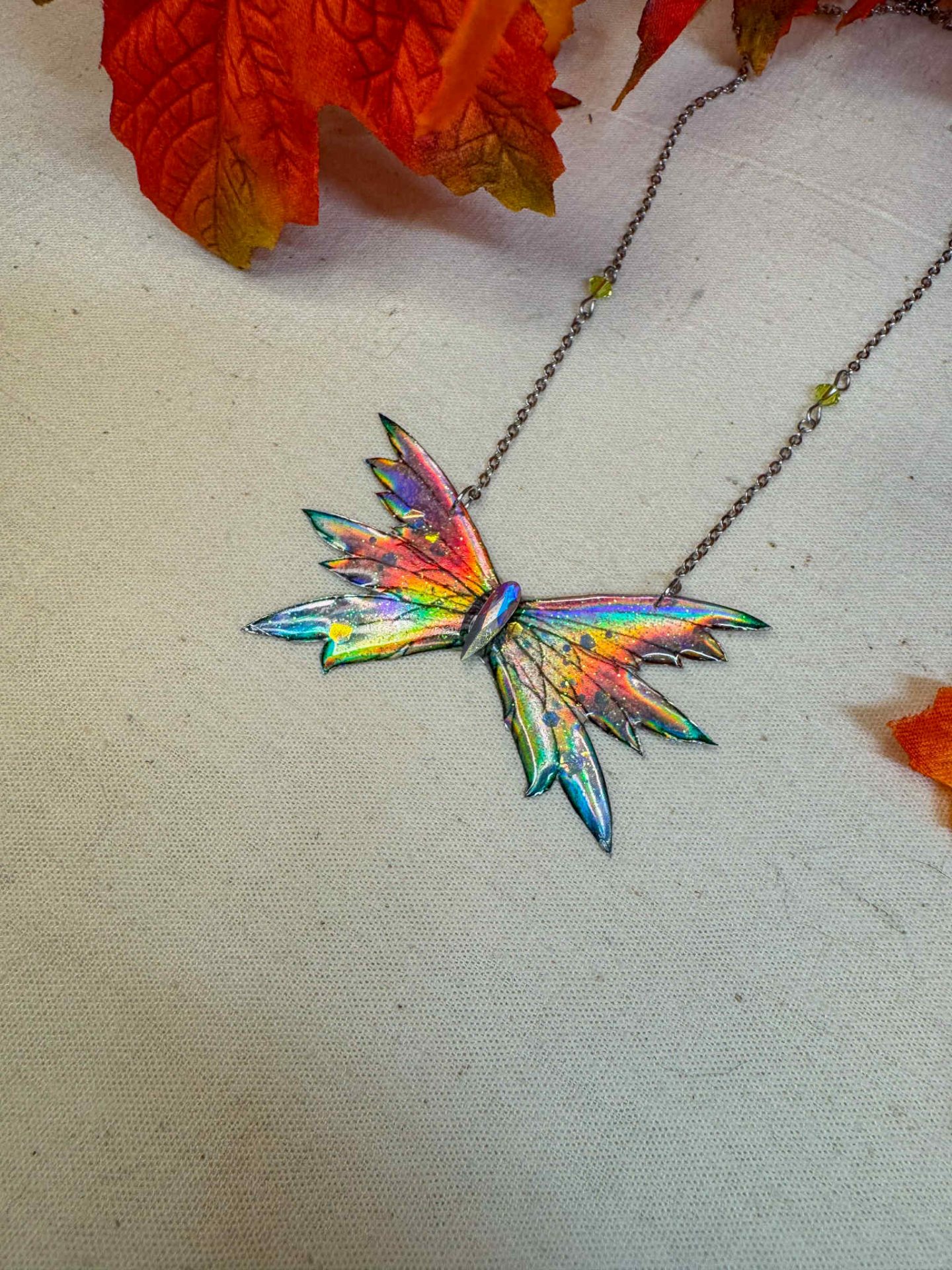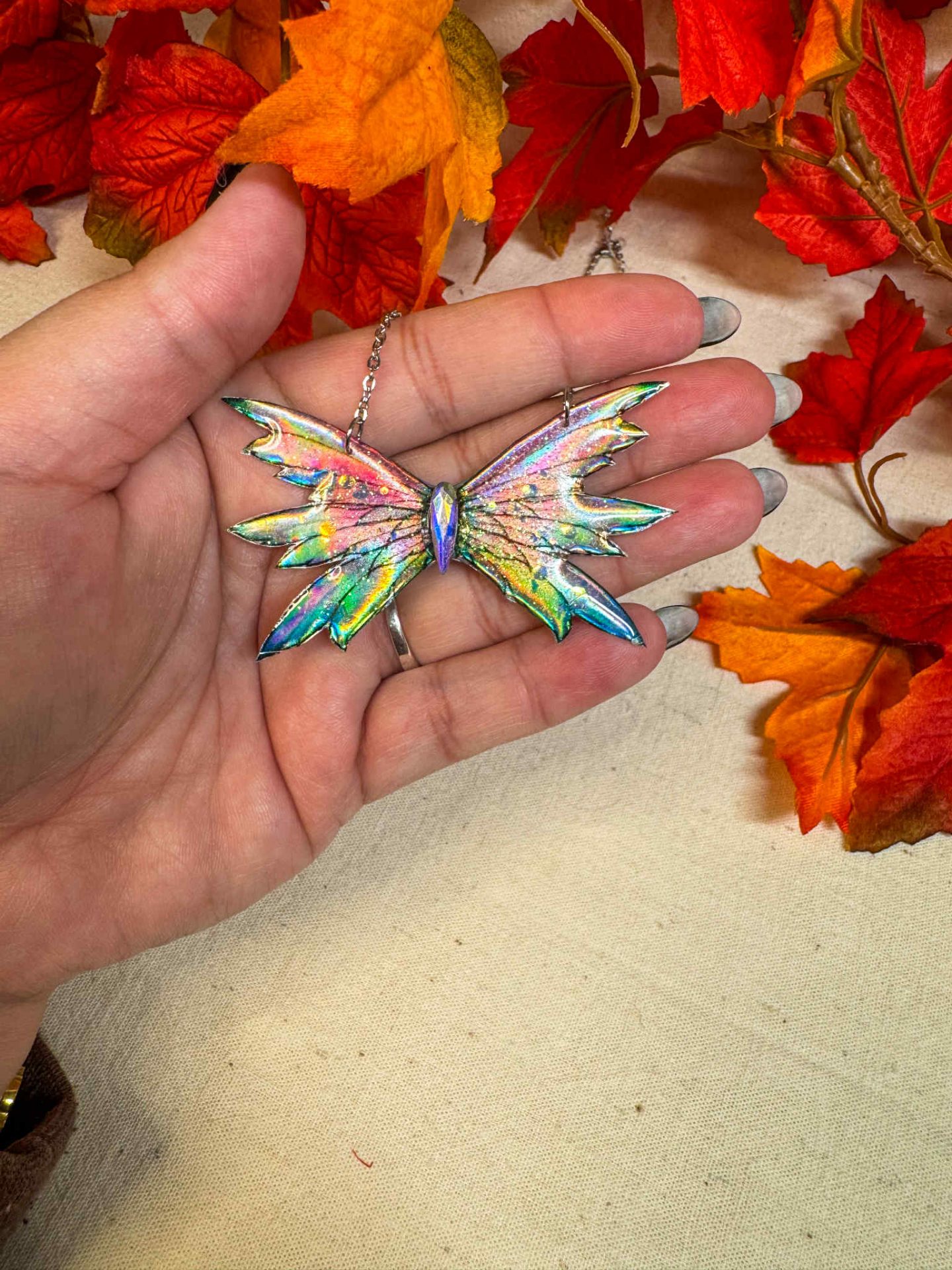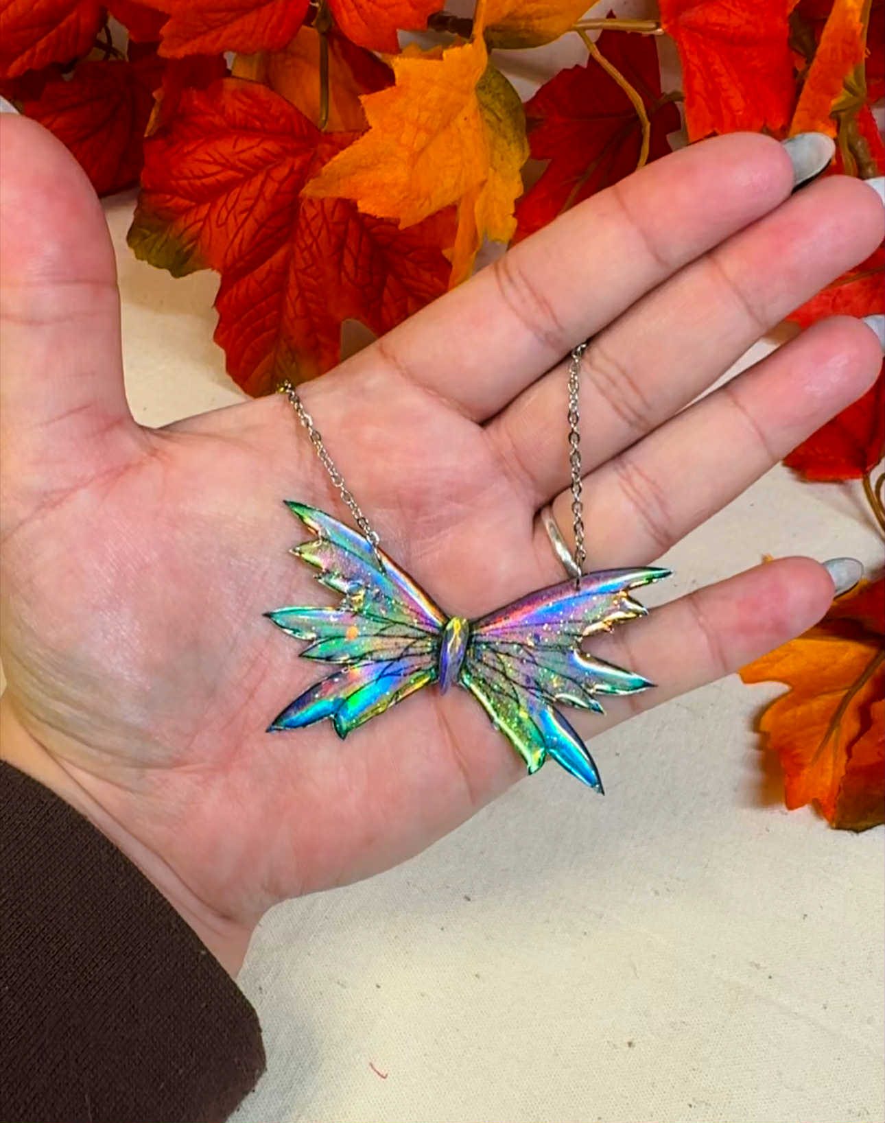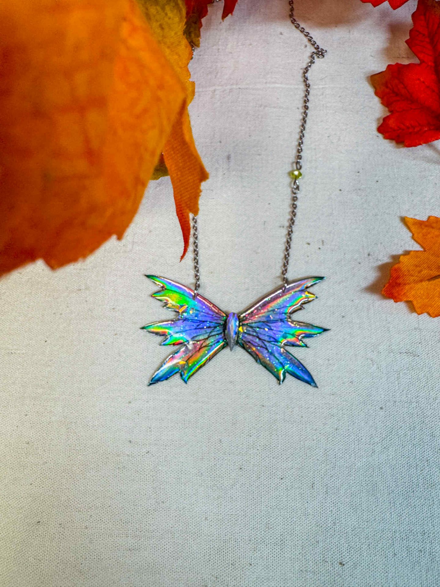 Un collier unique aux reflets holographiques, inspiré de la Fée du Printemps. Ses ailes scintillantes changent selon la lumière et évoquent le renouveau, la douceur et l’éveil de la nature. Une pièce poétique, féerique et lumineuse à adopter pour inviter la magie du Printemps dans votre quotidien.