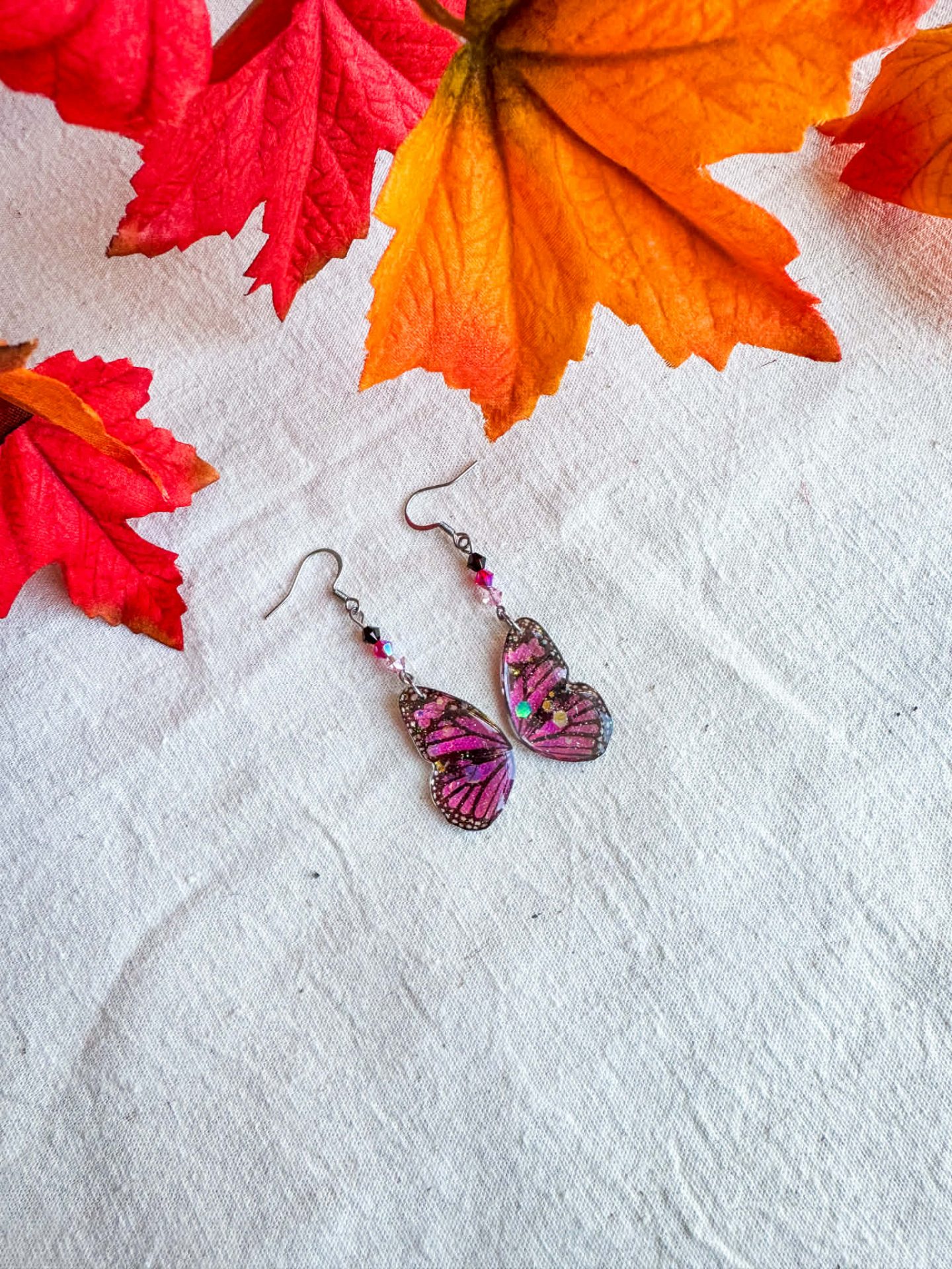 Ces boucles artisanales reprennent cette symbolique en capturant l’essence même du papillon : des couleurs intenses, une brillance maîtrisée et une finesse aérienne.