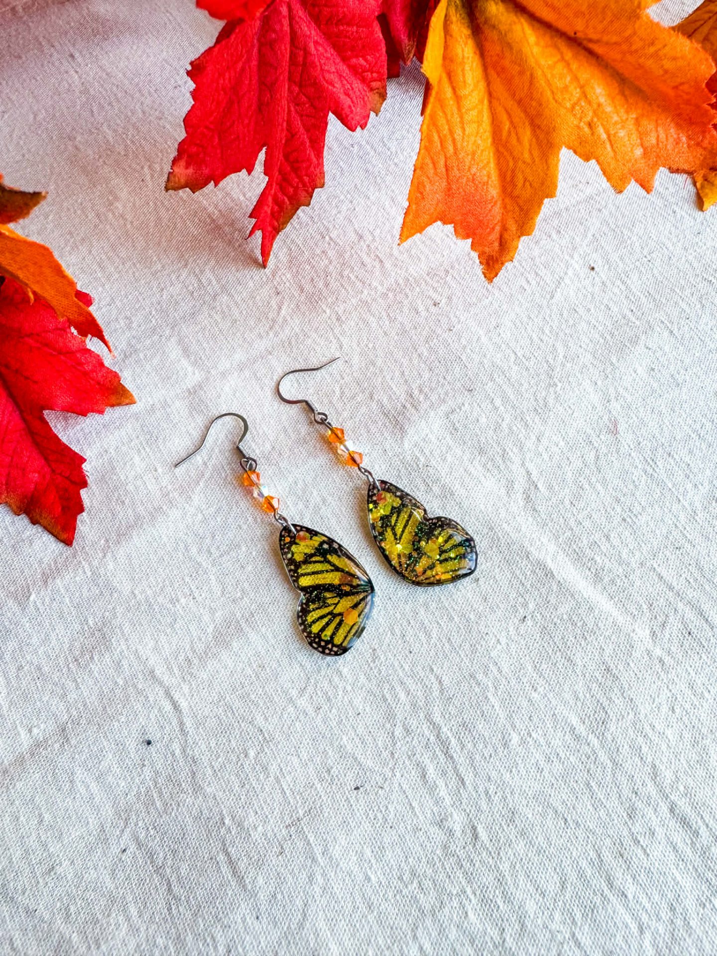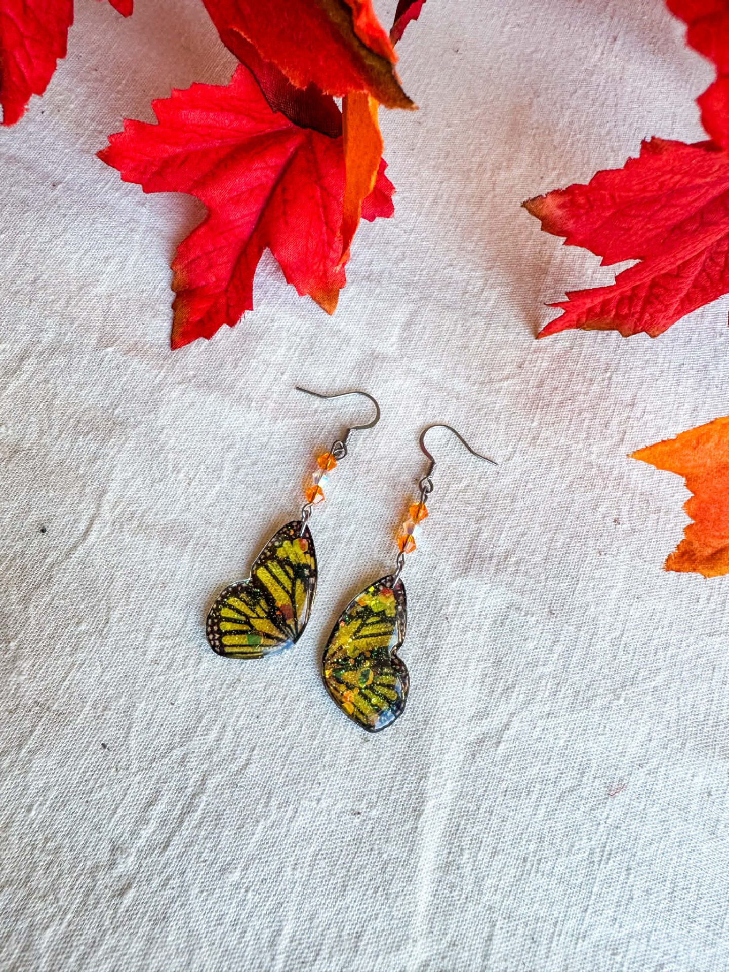 Ces boucles artisanales reprennent cette symbolique en capturant l’essence même du papillon : des couleurs intenses, une brillance maîtrisée et une finesse aérienne.