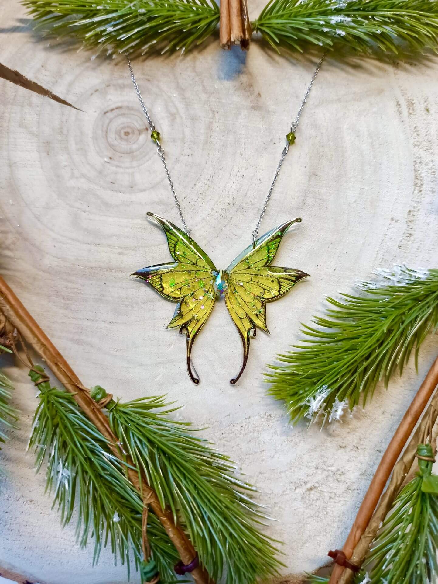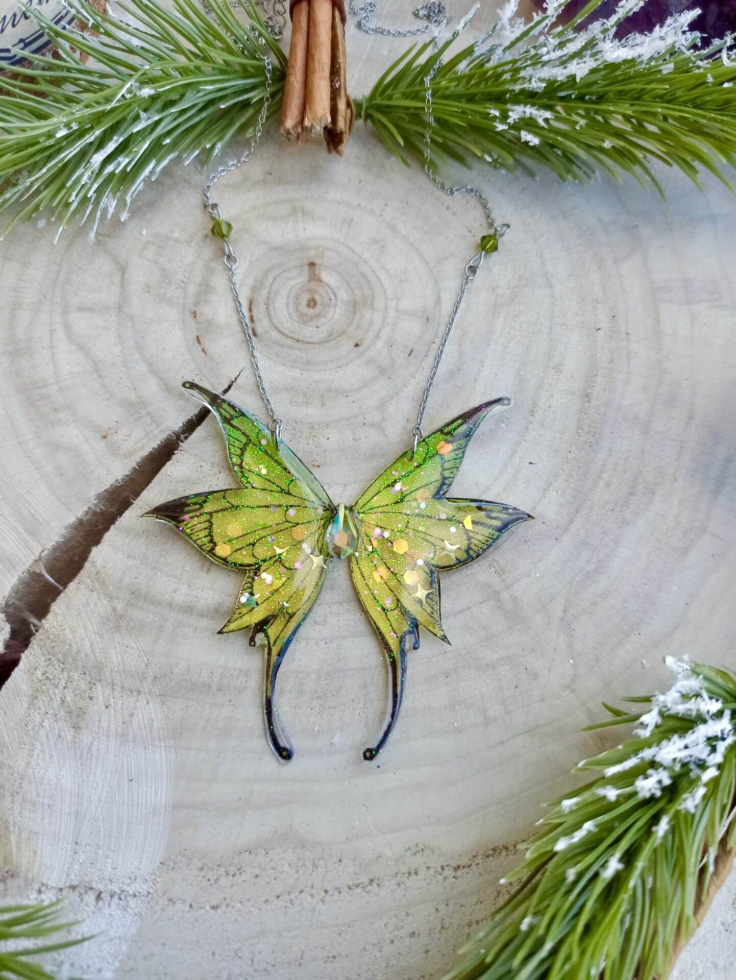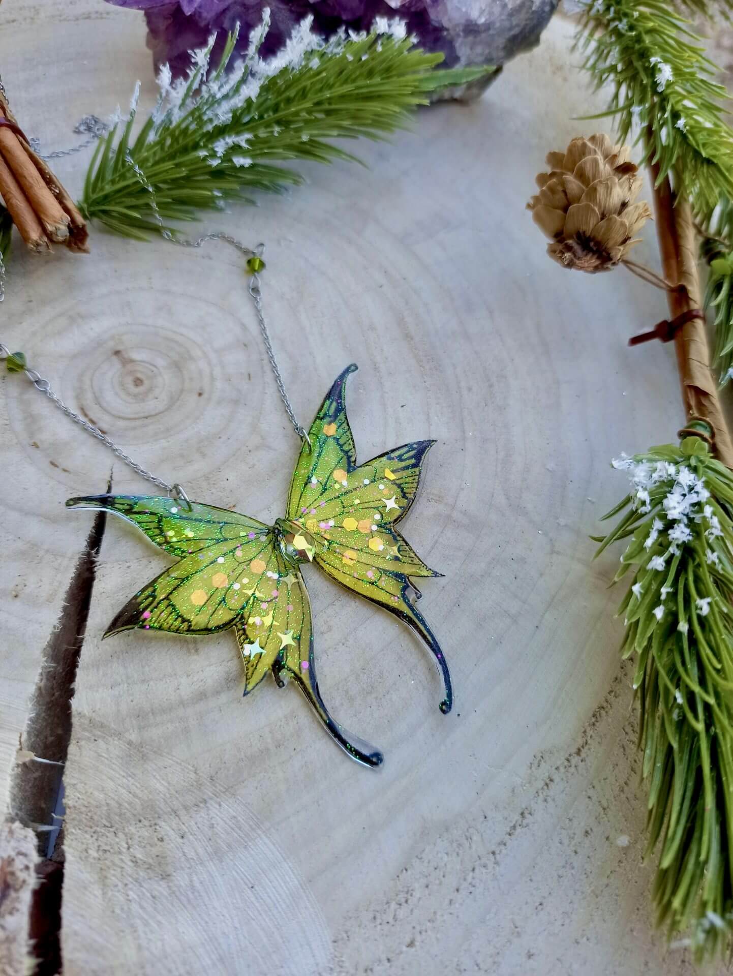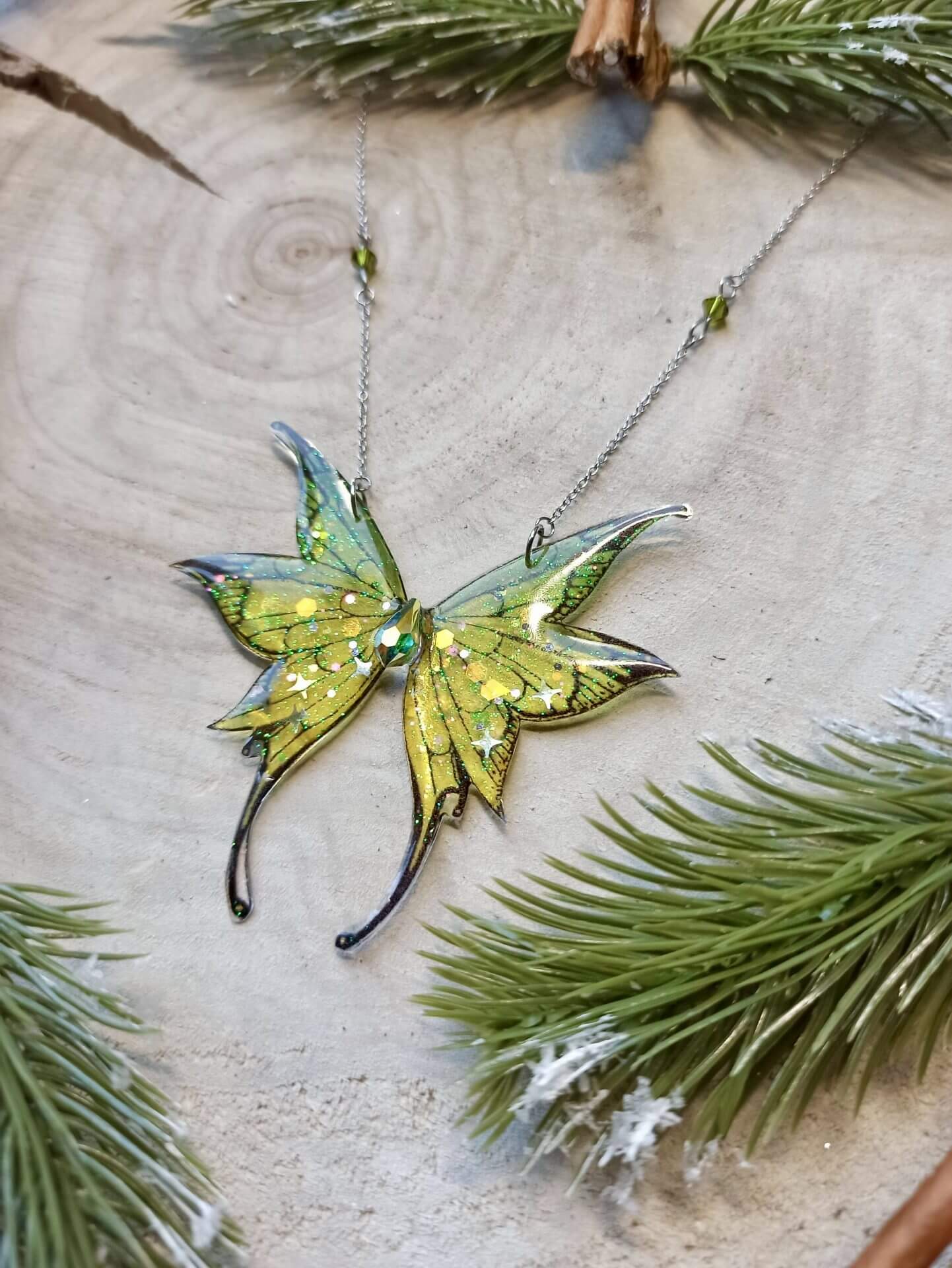 Immergez-vous dans les beautés des prairies montagneuses avec ce collier, inspiré des gardiennes du Petit Peuple. Composé d’une paire d’ailes rappelant les prairies verdoyantes, ce Nympherya apportera de la luminosité à votre tenue.